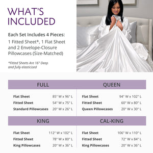Elevate your sleep experience with our luxurious silk sheeting, tailored to fit a range of bed sizes from Full to California King. Select from three opulent fabric weights for your ideal comfort: