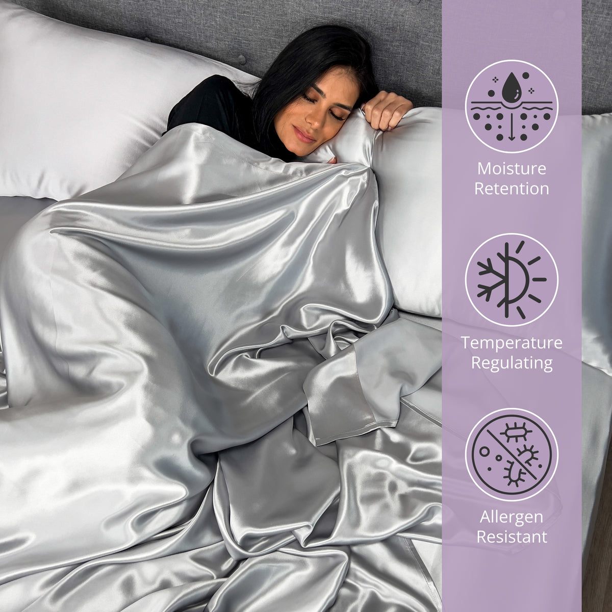 Silk sheets are an absolute gift to your skin. The smooth surface helps minimize sleep creases while the protein-based fibers soothe and hydrate sensitive or dry skin.