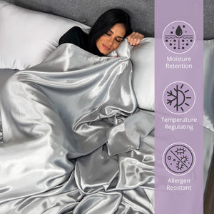 Our silk bedding delivers more than unparalleled luxury. It is are an overnight beauty treatment for your hair and skin. In fact, a set of our pure silk sheets is an absolute must for anyone in search of a beautiful night's sleep. Our silk keeps hair and skin hydrated; it helps to prevent tangles, frizz, and bedhead; and minimizes sleep wrinkles while you sleep!