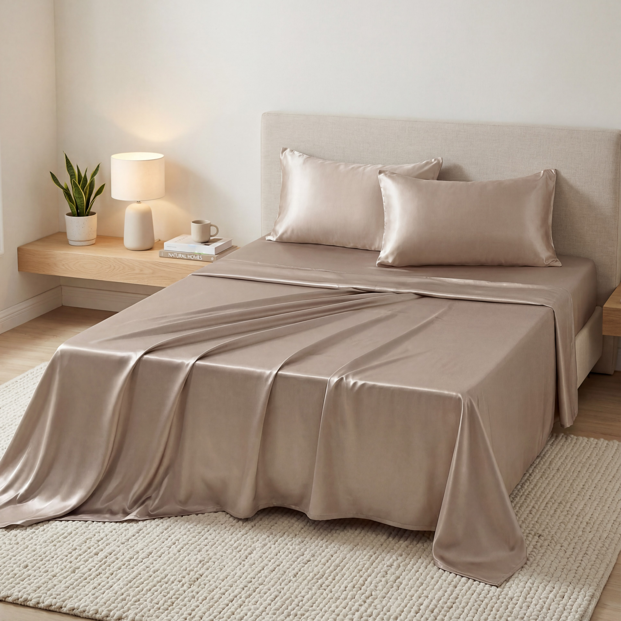 Elevate your sleep experience with our luxurious silk sheeting, tailored to fit a range of bed sizes from Full to California King. Select from three opulent fabric weights for your ideal comfort: