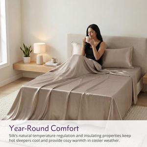 Silk's structure allows it to act as a natural insulator, trapping warmth during colder months to keep you cozy. In warmer weather, the breathable nature of silk lets excess heat escape while allowing air to circulate, keeping you cool. This ability to retain warmth and promote airflow makes silk the perfect fabric for maintaining a comfortable sleep temperature.