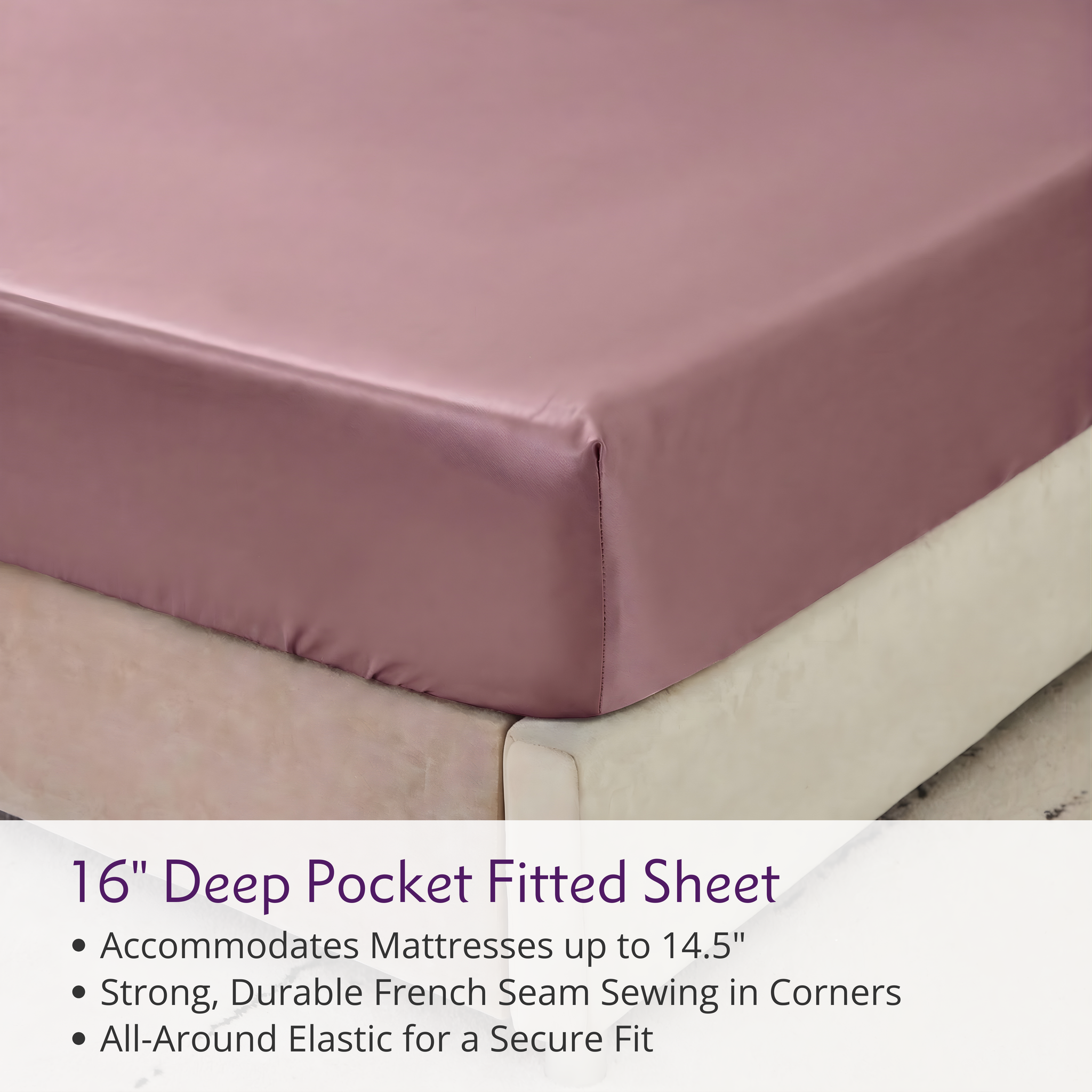 Our fitted sheets are fully elasticized. This design not only ensures that the sheets stay in place on taller mattresses but also allows them to fit shorter mattresses snugly without excessive loose fabric.